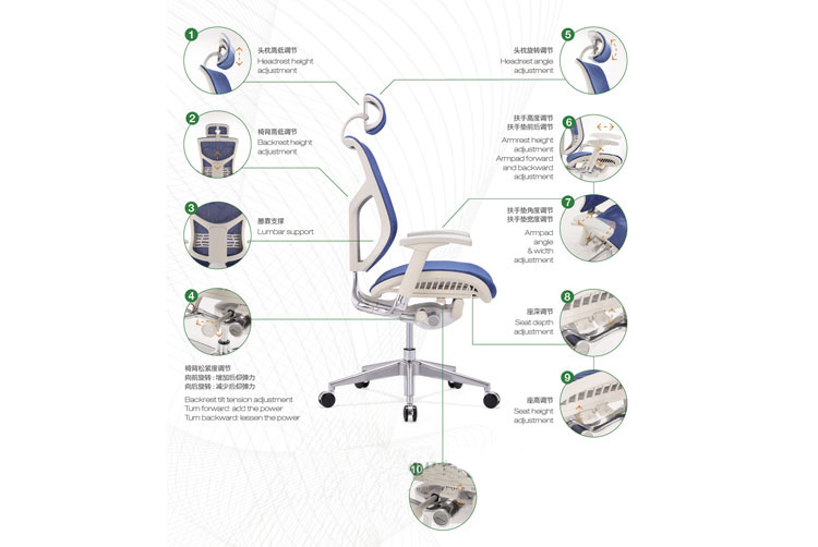 產(chǎn)品配置:塑膠框架:黑色:面料:優(yōu)質(zhì)進(jìn)口網(wǎng)布:PU扶手:底盤:自主研發(fā)鋁合金線控拋光:氣壓棒:電鍍,韓國KGS品牌,三級(jí)100mm行程:椅腳:HM9901鋁合金拋光:滑輪:65mmPU(固定式舒適墊或移動(dòng)式舒適墊選配)